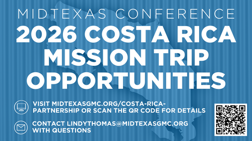 Individuals, pastors, and Missions leaders, please contact Lindy Thomas at lindythomas@midtexasgmc.org if you would like to consider joining or bringing a team to Costa Rica. All ages are welcome (as long as younger children are traveling with their parents) and there will be ministry opportunities for all. Training will be available for teams and leaders.